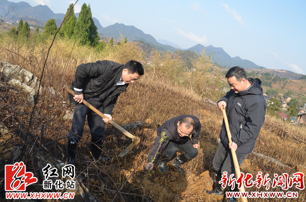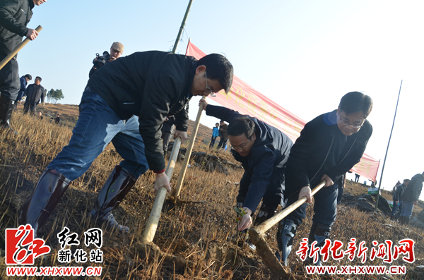红网新化站2月16日讯(分站记者 伍荟双)2月15日,娄底市第四个全面义务植树活动日,新化县委书记胡忠威带领县级领导、县直机关主要负责人和桑梓镇的干部400多人,来到桑梓镇维星村开展全民义务植树活动,用自己实际行动,为初春的梅山大地增添一抹新绿。当天维星村义务植树活动,累计栽植油茶、红叶石楠、樟树等各类苗木共7500余株,完成造林绿化面积80余亩。