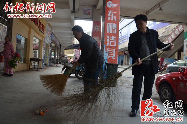当天,全民义务植树活动结束后,胡忠威一行又来到县城金山角小区参加新春卫生大扫除活动。