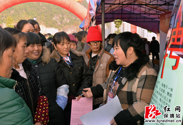 红网保靖站讯2月16日讯(分站记者 张承印)2月15日,在保靖县城酉水大道,保靖县2016年“春风行动”劳务招聘现场会举行,招聘现场人头攒动,78家企业、5000个招聘岗位任求职者选择,每家企业招聘点前围满了登记、咨询的招聘人员,招聘会盛况空前,应聘者纷纷点赞。在现场,浙江宁波、福建、江苏、长沙、广州、深圳等包括本地新中合光电科技(保靖)有限公司在内的多家知名企业来到现场广招才俊,提供建筑、建材、造船、光电等领域5000余个工作岗位,为广大求职人员在家门口和企业搭建了直接对话、自主交流、双向选择、互利共赢的良好平台。