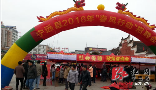 宁远县委、县政府历年来始终把就业工作摆在突出位置,各部门积极主动服务,利用春节期间举办招聘会,为广大群众送上及时的就业信息,帮助众多返乡过年人员实现家门口就业的愿望。