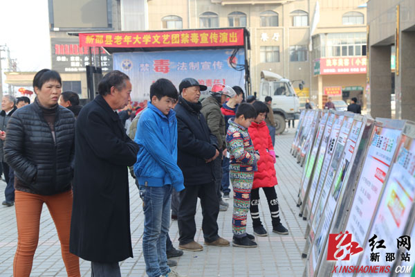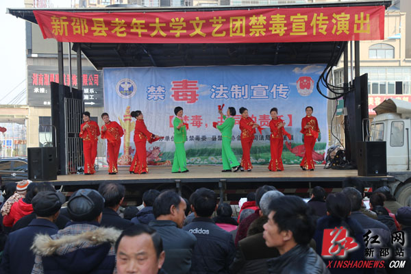 红网新邵站2月18日讯(通讯员 何雯 刘小平)“我们在等车准备外出打工,这里搞禁毒活动,正好边看戏边等车,对防毒禁毒知识也有了进一步的了解,真是一举多得”“文艺节目很精彩,禁毒宣传很到位”……2月18日上午,一场如火如荼的禁毒宣传活动在新邵县汽车站广场拉开了帷幕,围观的群众议论纷纷,赞不绝口。为进一步提升群众禁毒意识,教育规劝外出务工人员“珍爱生命,远离毒品,共同打好一场禁毒大战”,新邵县禁毒协会、县老年大学、县司法局和酿溪镇等联合开展了春运禁毒集中宣传活动。