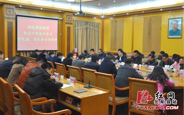红网岳阳县站2月19日讯(通讯员 侯剑平)新年伊始,岳阳县纪委监察局高度重视机关干部学习,2月18日下午即组织全体机关干部集中学习了中纪委、省纪委全会精神。县纪委宣教工作负责人姚小孔详细解读了习近平总书记在十八届中纪委六次全会上的重要讲话和中纪委书记王岐山在全会上的工作报告。办公室干部何源组织大家学习了省委书记徐守盛在省十届纪委八次全会上的讲话和省纪委书记傅奎所作工作报告。