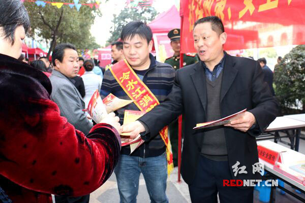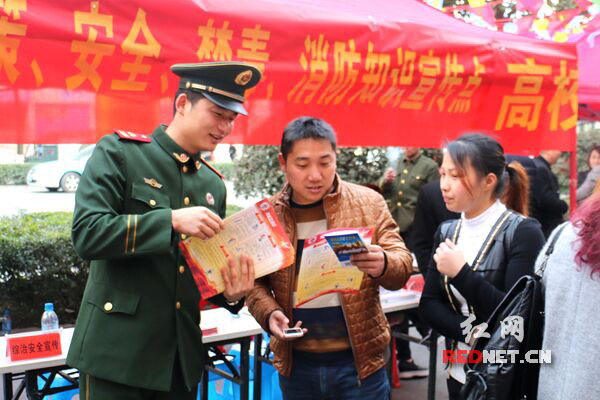 此次招聘会共有近百家企业参与,预计求职人员达3000余人,冷水江市政协副主席朱卫平来到现场指导工作并向市民发放消防宣传资料。活动期间,冷水江消防大队宣传人员向广大求职应聘者发放消防宣传资料和消防常识读本;同时,通过设立的消防宣传咨询服务点,现场向求职者们讲解灭火器、防毒面具、室内消火栓等常见消防设备的使用方法,传授初起火灾扑救处置和火场疏散逃生正确方法等。