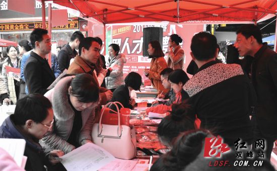 红网双峰站2月22日讯(分站记者 龚闯)2月19日至20日,由双峰青年创业联盟联合县内二十多家商企举办的“2016首届新春大型现场招聘会”在汇丰步行街举行,吸引数千人前来咨询、求职。据活动负责人介绍,此次招聘会以“搭建供需平台促进转移就业”为主题,免费发布招聘信息,方便双峰待业人群就近找到工作,总共提供岗位800多个,涉及地产、装饰、建材、服装、餐饮、医疗、销售、加工、培训等行业。