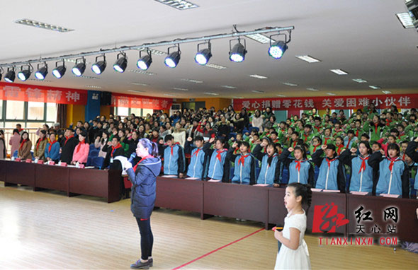 红网天心站2月23日讯(分站记者 徐拓)2月22日,正值中国传统节日——元宵节,在这个特殊的节日,长沙市天心区隆重举行2016年“爱心捐赠零花钱•关爱困难小伙伴”主题活动启动仪式。团市委副书记周坤、市青基会办公室主任羊舒麟、团市委学校部部长吴怡凡、区教育局副局长何阳莉、团区委副书记蒋苒出席活动。在活动现场,少先队员们把自己勤俭节约下来的零花钱和勤工助学得来的劳动报酬捐给了困难的小伙伴,送上了自己的一份爱心、一份温暖。近几年,天心区进城务工人员随迁子女人数不断增加,目前,已占到全部学生总数的35.03%。由于在随迁子女家庭中存在经济困难、缺乏关爱的情况,我区在保障随迁子女入学的前提下,努力实现教育均衡、公平和公正,教育局积极构建了“关爱”工程,开展了各类“爱心”活动,如:百名结对工程,由百名教师与百名学生手拉手,长期坚持给予困难学生资助和关爱;“暖冬行动”不仅为留守儿童添置新衣和学习用品,爱心志愿者还精心陪伴孩子度过愉快的一天。