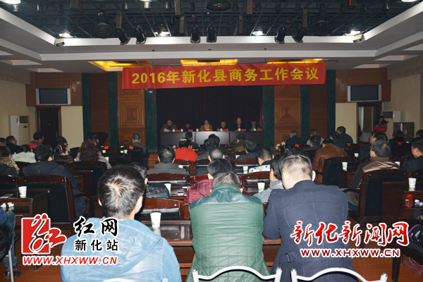 红网新化站2月23日讯(分站记者 杨尚勤)2月23日,新化县召开2016年全县商务工作会议。副县长曾欣华、县政协常务副主席罗荣赓等县领导参加会议。会上,县商务局局长杨利勤作2016年全县商务工作报告。他在报告中总结了2015年商务工作重点、亮点,安排部署2016年商务工作目标。他动员全体干部职工改进工作作风,以主人翁的态度,为全县经济发展贡献力量。2015年是负重加压、积极主动、奋发有为、卓有成效的一年。全县商务工作按照“适应新常态、抢抓新机遇、谋求新发展”的总体要求,围绕“天地人和”的工作主题,开拓创新,主动作为,连续两年被评为全省对外劳务合作公共服务示范平台、成功入选“湖南省农村电子商务示范县”、荣获“全市流通产业工作”“全市对外贸易工作先进单位”等荣誉称号。