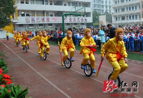 风车坪学校独轮车社团的孩子们化身“猴子猴孙”