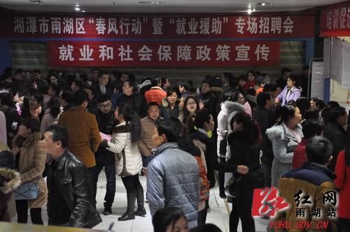 红网雨湖站2月25日讯(分站记者 王梓任 通讯员 陈红艳)为适应新常态,充分了解企业用工需求,推进劳动者实现精准就业,继18日在鹤岭镇举办首场招聘会后,2月24日,湘潭雨湖区在砂子岭金都家具市场三楼举办“春风行动”暨“就业援助”招聘会。在招聘会现场,城区市民占多数。整个招聘会现场人头攒动,热闹非凡。此次招聘会共有85家单位进场招聘,提供了涵盖酒店、教育、汽车维修、金融等多个行业共7000余个岗位。在3个多小时的招聘活动中,进场近4000人,共有423人与招聘单位达成录用意向。