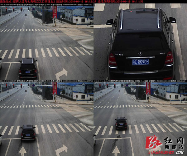 监控显示此辆车正在闯红灯