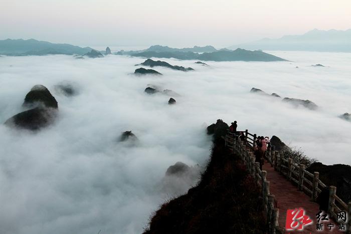 红网新宁站2月29日讯(分站记者 陈哲 通讯员 颜克明)2月27日早晨,世界自然遗产地崀山现猴年首次云海奇观。