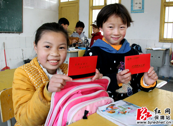 红网保靖站3月2日讯(通讯员 俞采华 陈亚平)3月1日,湖南省保靖县清水坪镇黄连小学建档立卡户的贫困留守娃喜领困难补助存折。近年来,保靖县不断健全贫困学生助学制度,加大对农村建档立卡户贫困学生的资助力度,及时解决学生读不起书难题。今年,保靖县将按每人1000元、1500元、2000元等标准,以发助学存折的方式将补助费陆续发至这些建档立卡户贫困学生手中,确保他们顺利完成学业。