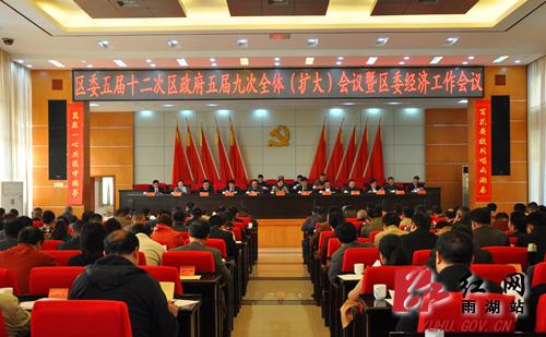 红网雨湖站3月3日讯(分站记者 谢岳峰)3月2日上午,湘潭雨湖区召开区委五届十二次、区政府五届九次全体(扩大)会议暨区委经济工作会议,深入贯彻落实中央、省委、市委经济工作会议精神,总结表彰2015年工作,研究部署2016年工作,推动雨湖实现“三年大变样”,各项工作实现“十三五”的良好开局。区委书记刘永珍出席会议并作重要讲话,区委副书记、区长何锋主持会议并作工作报告。