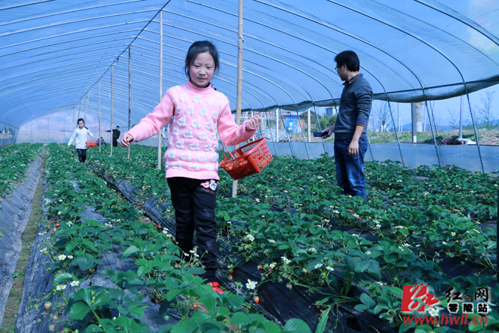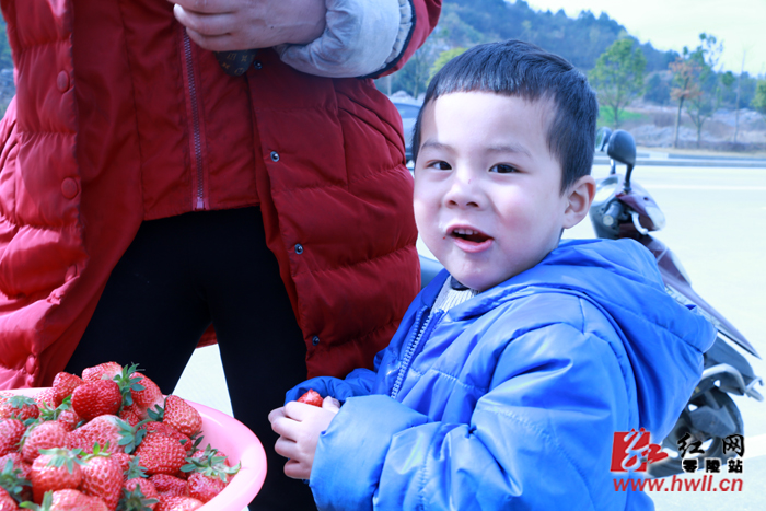 红网零陵站3月3日讯(分站记者 杨情陆)春暖花开,万物复苏。3月1日,记者在零陵区菱角塘镇、接履桥镇、朝阳办事处、工业园等草莓基地看到一派丰收景象,大棚里绿叶映衬着小花,红彤彤的草莓挂在垄沿上,芳香扑鼻,令人垂涎欲滴,不少游客一边采摘一边尝鲜,小朋友更是玩得不亦乐乎,共享“莓”好生活。“朋友圈里到处刷着新鲜诱人的草莓,就带着孩子过来体验一下。”刚下车的刘女士告诉记者,她和几个同事一起带着孩子体验生活,感受亲手采摘的乐趣。