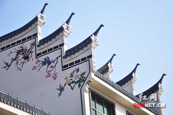 在永明路五一桥路段,每天100余名工人紧张地搭建施工架、粉刷外墙面。施工监理工程师诸远舒说,从建筑顶棚、墙面、窗户到广告牌、大门等,都统一风格、统一装修,除有马头墙、窗花、挂馏等烘托气氛、增添美感的项目,还在墙面彩绘、门楼、广告牌等方面融入瑶族文化、女书文化等地方元素。