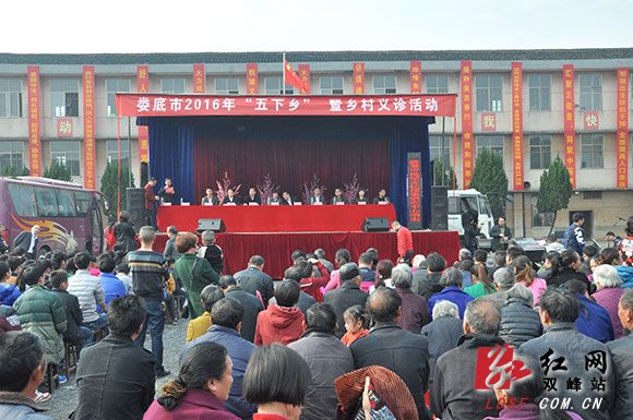 红网双峰站3月4日讯(分站记者 朱延寿 通讯员 王斌)3月3日,娄底市2016年政策、法律、文化、科技、卫生“五下乡”暨乡村义诊活动在双峰县印塘乡举行,形式多样、内涵丰富的活动吸引广大农民朋友到现场品尝这道丰盛的精神文化“大餐”,10余家市直单位开展现场集中服务。市委常委、宣传部长伍美华在启动仪式上指出,1996年双峰县探索开展政策、法律、文化、科技、卫生“五下乡”活动,得到省市肯定并在全省铺开,成为党和政府联系农村、农民、农业的响亮品牌,伍美华说,我们要组织好、开展好这项活动,促进农村的发展、为农民朋友送来更多关怀,双峰县要运用好“五下乡”的成果,在农村开展好文明乡镇、文明乡风建设和环境卫生整治,尽力为农民朋友服好务,推进农村精神文明建设和小康社会建设。