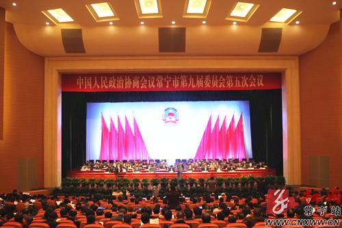 红网常宁站3月4日讯(分站记者 唐天任 周瑜)政协常宁市第九届委员会第五次会议于3月3日上午8点30分在市歌剧院开幕。今后3天里,二百多位政协委员将履行政治协商、民主监督、参政议政职能,积极建言献策,为全面深化改革凝聚共识,为争当县域经济发展排头兵汇聚力量。会场里气氛庄重热烈,象征全国各族人民大团结的政协会徽悬挂在主席台正中,十面鲜艳的红旗分列两侧,熠熠生辉,格外夺目。