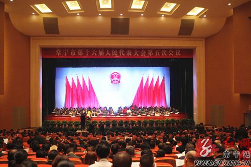 红网常宁站3月5日讯(分站记者 刘小咏 袁诗月 章彧辉 周瑜 刘萍)3月4日上午,常宁市第十六届人民代表大会第五次会议在市歌剧院开幕。出席会议的市人大代表肩负着全面建成小康常宁、力争县域经济排头兵的使命与责任,承载着全市人民的殷切希望和重托,胸怀诤言良策,汇聚一堂,共谋未来五年常宁的改革和发展大计。2016年是“十三五”的开局之年,是全面建成小康常宁决胜阶段的开局之年,也是推进结构性改革的攻坚之年。这样一个重要时期召开的一次重要会议,意义不同寻常,会议总结过去五年常宁改革与发展的辉煌成就,描绘今后五年常宁发展蓝图。所有的镜头和目光,向这里聚焦。所有的期盼和希冀,也在这里汇聚。