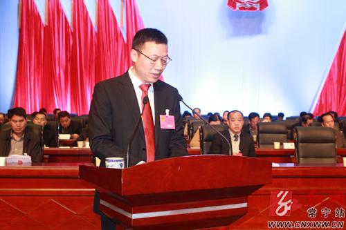 在热烈的掌声中,常宁市委副书记、市长李涛代表市人民政府作《政府工作报告》。一句句令人振奋的话语激起代表们的强烈共鸣,一幅幅幸福美好的蓝图清晰展现。