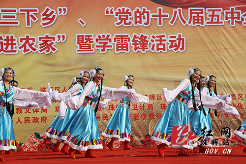 优美动听的歌声、热情奔放的舞蹈、诙谐幽默的脱口秀……活动现场,精彩纷呈的文艺演出赢得了群众们阵阵掌声。与此同时,各相关部门的工作人员及志愿者们搭建起咨询台,为村民们免费提供文化、科技、卫生等服务,耐心解答群众疑问。