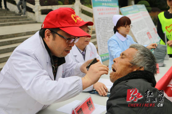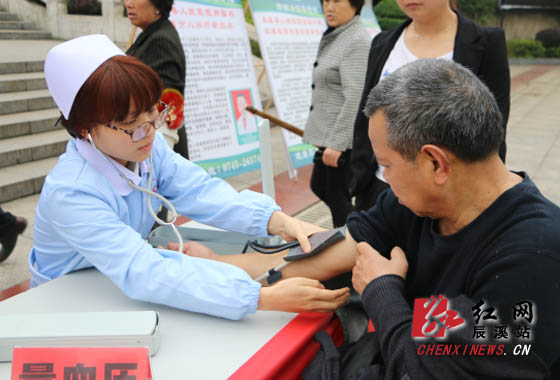 红网辰溪站3月8日讯(通讯员 钟倩 康静仪 黄嘉)3月5日是一年一度的学雷锋日,为大力弘扬雷峰精神,倡导志愿服务理念,当天,辰溪县创建办、团县委组织县人民医院在县城刘晓公园广场开展以“学雷锋送温暖、白衣天使献爱心”为主题的义诊活动。尽管春寒料峭,志愿者们学雷锋的热情却丝毫未减。活动现场,来自县人民医院心内科、外科、骨伤科、妇科、儿科的医疗志愿者们发挥所长,一边热情地为就诊群众进行体格检查、量血压、听心音,一边耐心地解答现场市民的问题。针对每一位就诊群众的检查情况,分别从健康、膳食和用药等方面给出合理化建议,优质的服务赢得了市民的赞扬。退休职工谢阿姨测量了血压,又向专家咨询了一些心脑血管方面的问题,连连夸赞:“这个活动办的好啊,特别是对我们老年人有好处,专家的建议真的很有帮助,这就是把健康送到我们家门口。”