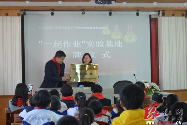 红网安乡站3月14日讯(分站记者 曹晓华 通讯员 刘琼)3月11日上午,中国教育学会外语教学专业委员会国家“十二五”重点课题“新课程形势下小学英语网络作业形式探究”实验基地授牌仪式在城东小学举行,中国教育学会外语教学专业委员会课题组专家为城东小学授牌,这标志着城东小学成为安乡县首家十二五课题“实验基地”。该课题的指定研究平台是“一起作业”小学英语智能网络个性化自主学习平台,此平台拥有口语智能个性化纠错分析、自适应学习、同步互动趣味练习、作业班级管理、在线测评等多项技术,学生、教师、家长、学校均可以免费使用。小学英语教师可以通过此平台实现为学生布置作业、检查作业、单元测评、批量评语等功能,并且可以帮助学生提升口语听力水平,发展学生的自主学习能力,激发学生的学习兴趣,提升学生的学习效率。