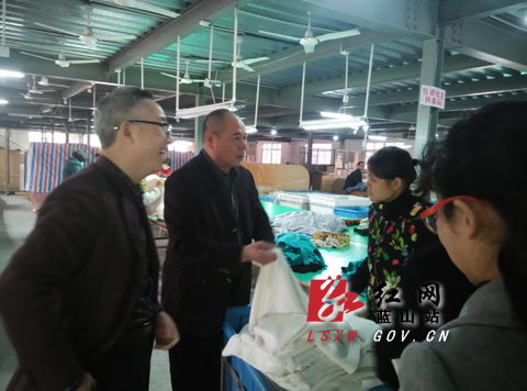 红网蓝山站3月16日讯(分站记者 黄俊北 通讯员 封举敬)3月15日上午,湖南大学经济与贸易学院院长、博士生导师张亚斌课题组一行就编制《蓝宁道新江加工贸易走廊产业规划》这一课题,在永州市发展开放型经济领导小组办公室有关负责同志的陪同下深入蓝山调研加工贸易发展情况。张亚斌课题组一行先后来到台资企业永州承阳针织有限公司、永州加伟鞋材有限公司、永州湘威运动用品有限公司等企业调研,课题组每到一处都与企业负责人亲切交谈,详细询问了解企业投资落户蓝山的过程、生产经营情况、当前遇到的困难和问题、将来发展的方向和前景等,并鼓励企业积极拓展市场、盘活存量、做大增量、自主创新突破式发展。