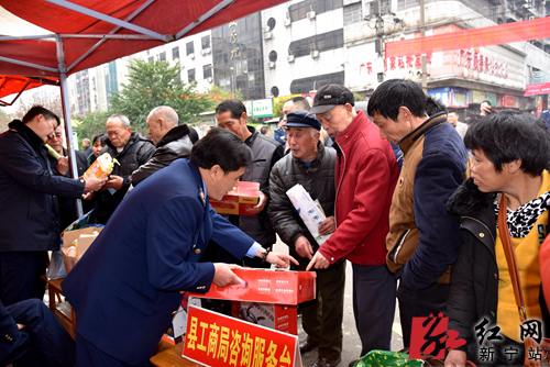 红网新宁站3月16日讯(分站记者 李中 伍先忠 通讯员 高慧)这产品为什么存在虚夸效果?这物品怎么属于假冒伪劣商品?旅游不合理消费该如何维权?3月15日,新宁县3·15国际消费者权益日宣传咨询活动在县城老广场以及崀山北大门同时举行。当天,县消委、工商局质监、药监、烟草、物价、盐业、旅游、恒源公司等10余个部门接受上千名游客和群众的咨询。“这种保健品包装盒上写了可以防癌,还能调节免疫力,治疗疾病的效果比药品还“神奇”,其实是夸大了治疗效果,消费者购买时一定要谨慎,以免上当受骗。”在新宁县城老广场的活动现场,工作人员向前来咨询的群众披露所陈列的虚假保健品信息,详细讲解鉴别假货的相关知识,并现场接受咨询投诉。