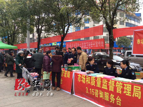 红网蓝山站3月16日讯(分站记者 黄俊北 通讯员 何英学)3月15日上午,蓝山县市场和质量监管局、县消费者协会会同烟草、盐业、农业、农机、人民银行、移动公司、中心医院等单位,在县城塔峰路仰东超市门口举行了纪念“3.15国际消费者权益日”暨“新消费我做主”主题宣传活动。县委常委、常务副县长黄永英参加本次活动。
