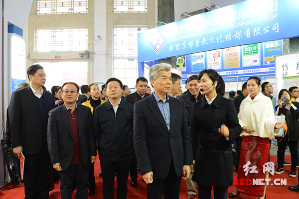 3月18日,第二十三届长沙图书交易会在湖南省展览馆开幕,长沙市委常委、宣传部长张湘涛(前排左一)观展。