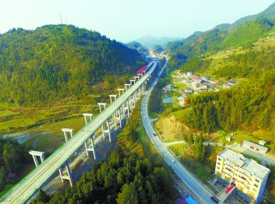 时刻新闻 —分享— 3月18日,正在建设中的张桑高速公路贵竹湾高架桥。贵竹湾高架桥位于张家界市永定区教字垭镇三龙村,该桥总造价约3900万元,预计2016年8月中旬完成所有桥面铺装。 邵颖 摄 来源:湖南日报 作者:邵颖 编辑:胡芳
