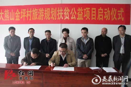 此次帮扶之行,娄底市旅游外事侨务局与中合慧眼(长沙)规划设计院在金坪村共同启动了新化县大熊山金坪村旅游规划扶贫公益项目,通过发展旅游帮助金坪实现脱贫致富。