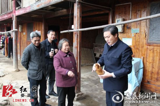 红网娄底站3月21日讯(分站记者 杨志慧)“张怡志,我们又来看你了!”3月17日-18日,娄底市人大常委会主任易春阳带领人大机关干部职工深入建设扶贫联系村——新化县大熊山林场金坪村开展“万名干部下基层解难惠民促发展”活动。市人大常委会副主任赵应良、颜桂兰、龚彧、陈明华、杨金含,市人大常委会秘书长袁跃进参加活动。“现在是春耕播种时期了,准备种点什么?”易春阳看到刚从地里忙活回来的张怡志父亲,问了起来,“刚到地里看了下,种上的猕猴桃苗已经抽芽了”,“那不错,再等两年就可以挂果了”。听到扶贫后,村里规划发展的猕猴桃产业来势不错时,易春阳露出了欣慰的笑容。