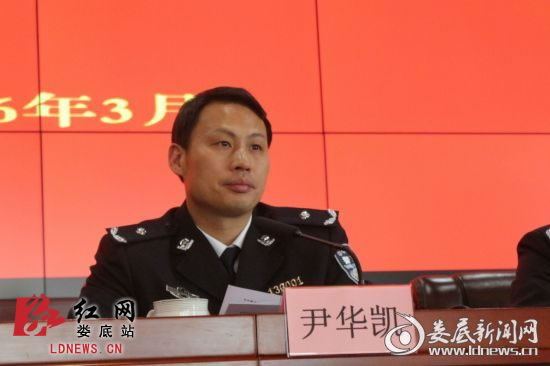 红网娄底站3月21日讯(分站记者 朱亚男)3月18日,娄底市公安工作会议在市公安局召开。娄底市副市长、市公安局局长尹华凯作《服务大局防控风险精准发力全面突破努力推动全市公安工作再上新台阶》主题讲话。会议深入贯彻中央、省委、市委政法工作会议和全国、全省公安局长会议精神,认真落实市委、市政府有关工作部署,全面总结了2015年度全市公安工作情况,分析当前形势,对2016年度工作做出安排部署。