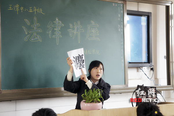 宁乡县检察院检察官胡赛兰为宁乡县玉潭中心小学的同学们讲解简单的法律知识。