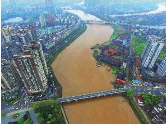 3月23日,衡阳市石鼓区,穿城而过的湘江支流蒸水水位涨到高位。