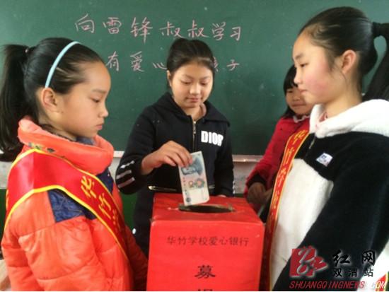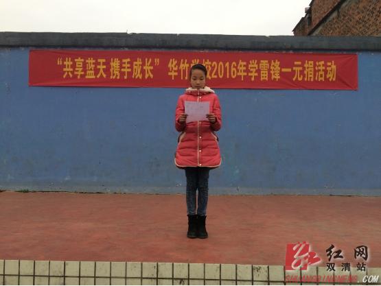 邵阳双清区华竹学校少先队发起是“共享蓝天,携手成长”“学雷锋一元捐”活动倡议