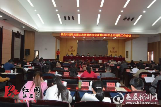红网娄底站3月30日讯(分站记者 付娟 通讯员 彭烙)3月28日,娄底市残联三届主席团第四次会议暨2016全市残联工作会议召开。会议回顾了2015年娄底残疾人事业发展的成绩,提出新的的发展思路和工作目标,全面部署2016年全市残联工作。娄底市残联第三届主席团主席、市人民政府副市长刘益丈出席并作重要讲话,市残联党组书记、理事长曾晴川,市残联第三届主席团副主席阳梦觉、蒋年发、石刚、李友庆、彭砥如,市残联全体班子成员,各县市区残联理事长及相关负责人等一百余人参加会议。会议由主席团副主席、市人民政府副秘书长彭斌鹏主持。曾晴川在工作报告中说,近年来,全市残疾人工作紧紧围绕市委、市政府民生工作重点,以加强残疾人社会保障体系和服务体系建设为主线,全面实施各项助残实事工程。2015年全市残联为各类残疾人提供服务4万余人次,提供康复服务2398名,其中0—7岁贫困残疾儿童抢救性康复562人,残疾人辅具适配646名,在“残联光明行动”中免费实施白内障复明手术1000余例,为190名智力残疾儿童购买康复服务;投入154.9万元对853名残疾人进行职业技能和实用技术培训;为全市30名贫困高中残疾学生发放助学金3万元;为23747人发放重度残疾人护理补贴631.675万元;投入52.8万元为882人开展阳光家园居家托养;为1320名残疾人发放残疾人机动轮椅车燃油补贴39.338万元;投入70.7万元为101户贫困残疾人家庭进行无障碍改造;为盲人保健按摩机构争取省级扶持资金25.02万元,新增盲人保健按摩从业人员32人;为全市16548人办理残疾人证;特教学校聋生书画比赛获二等奖1名、三等奖2名;残疾青少年才艺展演活动获金奖1名、银奖1名、铜奖3名;第九届残运会娄底运动员获银牌3枚;投入174.5万元扶持121户残疾人家庭创业,申报残疾人创业小额贷款贴息总额580万元,贴息资金40.6万元;全年慰问贫困残疾人800余次共40多万元惠残助残等事项。