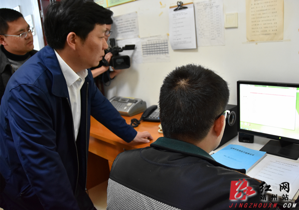 靖州县委副书记、县长田连钊查看雨量监控系统的运行情况。 何嫘 摄