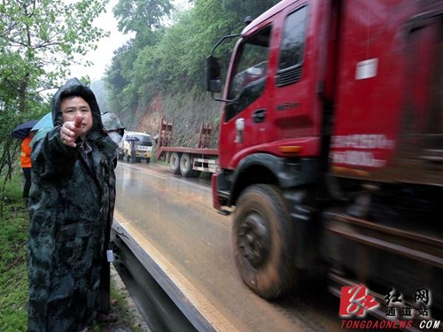红网通道站4月14日讯(通讯员 肖志刚 杨鸿轩 龙礼高)4月12日早上8时左右,G209国道县溪镇姚来滩段发生山体滑坡,崩塌的土石方将道路全部阻断,导致公路交通完全中断。由于该国道是连接湖南与广西的交通要道,交通中断后不久国道上双向车辆都排了长龙,延绵2公里。险情发生后,镇长、镇党委副书记第一时间率领应急分队赶赴现场冒雨进行抢险和维持交通秩序,并及时向县交通局通报险情。不久该局紧急调来推土机、挖掘机等大型专业设备进行疏通作业。应急队员与专业施工人员紧密配合,冒着随时落石的危险,争分夺秒抢修道路。经过几个小时的施工,道路终于疏通。随后,应急队员又投入到紧张的疏导交通工作中,指挥被堵车辆有序通过塌方区。