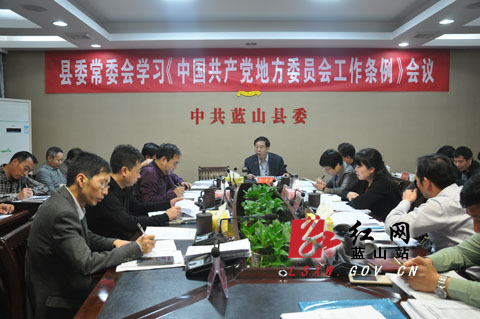 红网蓝山站4月14日讯(分站记者 黄智征 通讯员 廖文娟)4月12日,湖南蓝山县委书记何冲龙主持召开县委常委会议。秦志军、朱阳辉、谭平玉、陈海潮、黄和平、蒋季红、刘素萍、黄永英、唐志雄、何红喜、黄萍等县领导出席会议。会议传达了“湘南地区全面建成小康社会工作座谈会议”精神及贯彻落实意见、中组部《关于“三严三实”专题教育总结报告》和“全市组织部长、统战部长会议”精神及贯彻落实意见、“全市公车改革工作会议”精神及全县贯彻实施初步意见、省纪委通报:《让失责必问成为常态推动全面从严治党落到实处》、“全市‘三名工程’推进会议”精神及蓝山县贯彻落实意见、“全省扶贫办主任会议”精神及蓝山县贯彻落实意见、“全市美丽乡村建设工作会议”精神及蓝山县贯彻落实意见;传达学习了“习近平总书记参加湖南代表团审议时的重要讲话和参加全国政协十二届四次会议民建、工商联界委员联组会时的重要讲话精神”;研究了《创建省级文明城市实施方案》和《蓝山县关于贯彻落实湖南省党委(党组)意识形态工作责任制实施细则的意见》《2016年蓝山县宣传思想工作要点》《2016年蓝山县委中心组理论学习安排意见》、2016年蓝山县精神文明建设工作要点;《蓝山县房产税费征收实施方案》;政府部门组成部门三定方案;会议还学习了《地方党委工作条例》。