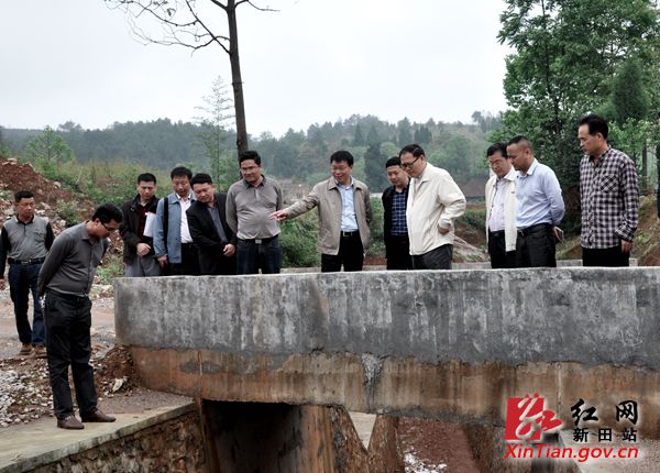永州市副市长刘尤碧(右四)察看水利工程建设