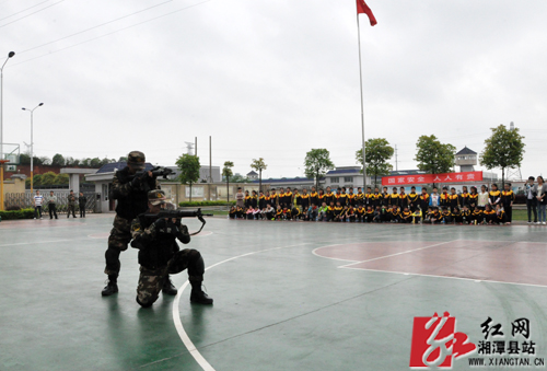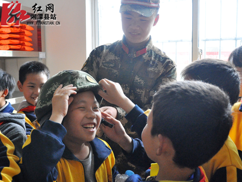 首个全民国家安全教育日,湘潭县山塘小学60余名学生走进县武警中队,参加警营开放日活动,体验武警生活。