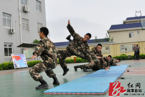红网湘潭县站4月16日讯(分站记者 龙蓉)“哇,武警叔叔这身手太帅了”“这个防爆头盔太酷了”“被子竟可以叠得这么整齐呀!”4月15日是我国首个全民国家安全教育日,湘潭县山塘小学60余名学生走进县武警中队,参加警营开放日活动,体验武警生活。当天,县武警中队的警官们首先为学生们进行军事训练表演。特种战术手语、小组协同作战、摔擒……警官们矫健的身姿、敏捷的身手,让学生们大呼“仿佛身临电视画面”。随后,在警官的带领下,学生们还依次参观了警营宿舍、荣誉室和训练器材室。在器材室,大家争相观看各种训练器材,向警官们请教其用途。