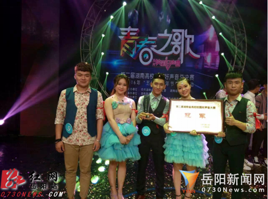 红网岳阳站4月23日讯(分站记者 宁平 通讯员 许乐洋 金芳 谢力军)4月21日,青春之歌——湖南省第二届高校校园好声音大赛总决赛暨2016年“五四”青年节特别活动在长沙落幕,经层层筛选的12支高校代表队,通过现场3轮竞唱,经专业评委现场评分,最终湖南民族职业学院(简称湖南民院)夺得冠军,吉首大学获亚军,湖南工业职业技术学院获季军。省教育厅领导肖国安、陈飞跃等出席本次活动。湖南民院许乐洋、吴军等有关部门领导也全程参与了活动,为选手们加油鼓劲。