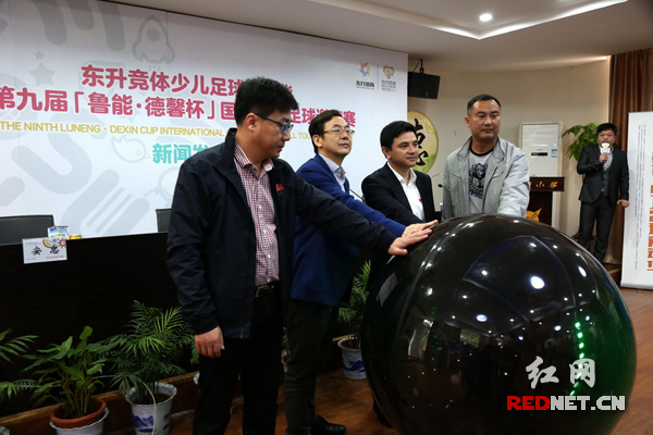 红网长沙4月25日讯(通讯员 李天为)2016年东升竞体少儿足球嘉年华暨第九届“鲁能·德馨杯”国际少儿足球邀请赛将于5月1日拉开大幕。4月21日上午,组委会在湖南省长沙市雨花区德馨园小学举行新闻发布会。参加这次发布会的领导和嘉宾有:湖南省体育局副局长熊倪、湖南省教育厅副巡视员郭建国、湖南省足协秘书长安忠、东升竞体“鲁能·德馨杯”组委会负责人唐奎、湖南东升体育经纪有限公司负责人周涛等。