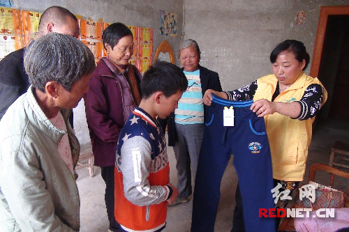 在丁堤村村口,身穿黄马甲的志愿者远远就看见了一位孩子,赶紧加快了步伐。这位叫刘游(化名)的孩子,就读于安乡县黄山头镇中学九年级,品学兼优,父亲是个聋哑人,母亲身体有严重缺陷,小他7岁的妹妹也是聋哑人。从小父母没能力管他,他便跟随爷爷奶奶生活。4年前,某慈善基金志愿者在安乡县寻访贫困学子时,得知刘游的情况,把他纳入了助学范围,每学期给予一定助学金。当天,志愿者给刘游送来了新衣服、课外书本、食品。得知刘游马上要中考了,志愿者一边给刘游加油、鼓劲,一边又从心理调适、饮食规律、学习与休息安排等方面给他建议。