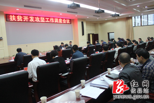 红网攸县站4月26日讯(分站记者 夏开瑞)4月26日,湖南省攸县召开扶贫开发攻坚工作调度会。会议由县委常委、县委办主任吴爱清主持,县委常委、副县长、县扶贫开发攻坚工作领导小组副组长陈运发出席会议并讲话。会上,攸县扶贫办通报了前一阶段全县扶贫开发攻坚工作情况,县人社局、县住建局、县教育局等部分重点责任单位汇报了去年扶贫工作的成效及2016年的措施、问题建议。