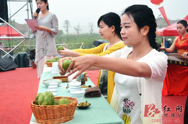 活动现场,300亩朝鲜蓟示范基地泛起阵阵绿浪,蓟花的清香刺激着游客们的味蕾,大家纷纷卷起裤腿,下地采摘鲜果。在朝鲜蓟烹饪大赛和朝鲜蓟产品展示的展台前,一众“吃货”闻味而动,品尝朝鲜蓟酒、饮料、茶叶等,享用朝鲜蓟菜品。当天下午,还召开了朝鲜蓟深加工高峰论坛,来自湖南农业大学等单位的专家学者交流朝鲜蓟精深加工等。