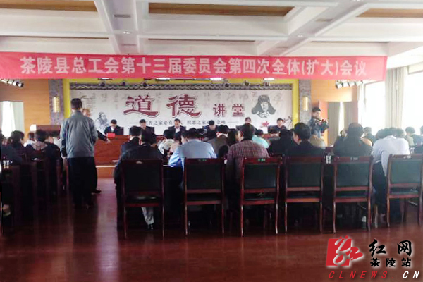 红网茶陵站4月28日讯(分站记者 段程予 通讯员 陈一)4月28日,湖南省茶陵县总工会第十三届委员会第四次全体(扩大)会议在电力宾馆召开。县委副书记、组织部长谢志军,县总工会主席陈秋福出席会议。2015年,全县各级工会深入学习贯彻党的十八届四中,五中全会会议精神,践行“三严三实”活动,在助力发展、构建和谐、服务职工等方面取得了新进展。积极参与全县“创新创业典型模范”评选活动,开展了“五一工人阶级宣传月”“工人先锋号”创建活动。