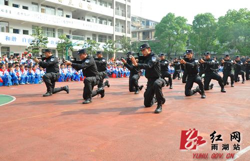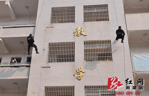 红网雨湖站4月28日讯(分站记者 谢岳峰)“哇!好酷炫啊。”4月28日上午,在湘潭市雨湖区风车坪学校,数名特警队员顺着绳索从20多米高的教学楼顶速降至地面,让在场学生欢呼雀跃。为做好校园安全防范工作,营造和谐稳定的校园环境,当天,湘潭市公安局巡特警支队“警校携手,护校安园”开放日活动走进了风车坪学校,为全校师生传授安全常识。湘潭市公安局党委委员、政治部主任席晓刚,市教育局副局长吴三成,市公安局巡特警支队支队长肖培根,区委常委、政法委书记王振华,区委常委、副区长唐世荣,副区长、雨湖公安分局局长陈静等出席活动。